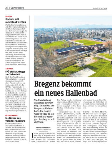 Stadtvertretung entschied einstimmig für Neubau des Bregenzer Hallenbads. Die Kosten werden circa 38 Millionen Euro betragen. Baubeginn soll 2022 sein.