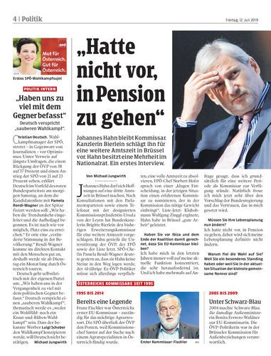 Johannes Hahn bleibt Kommissar. Kanzlerin Bierlein schlägt ihn für eine weitere Amtszeit in Brüssel vor. Hahn besitzt eine Mehrheit im Nationalrat. Ein erstes Interview.