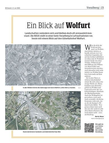 Landschaften verändern sich und bleiben doch oft erstaunlich konstant. Die NEUE stellt in einer Serie Vorarlberg in Luftaufnahmen vor, heute mit einem Blick auf den Güterbahnhof Wolfurt.