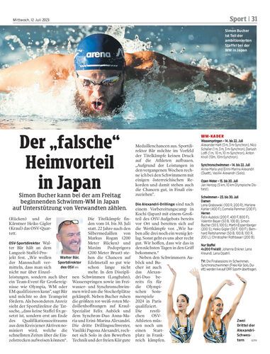 Simon Bucher kann bei der am Freitag beginnenden Schwimm-WM in Japan auf Unterstützung von Verwandten zählen.