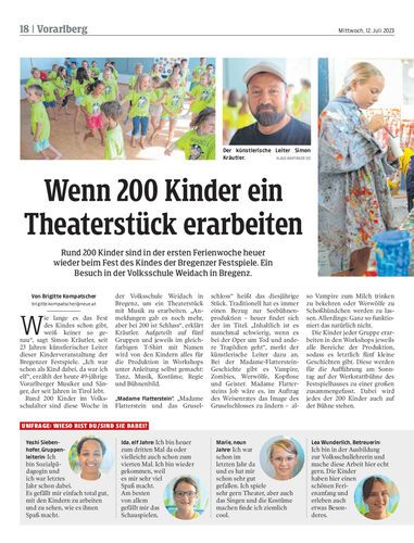 Rund 200 Kinder sind in der ersten Ferienwoche heuer wieder beim Fest des Kindes der Bregenzer Festspiele. Ein Besuch in der Volksschule Weidach in Bregenz.