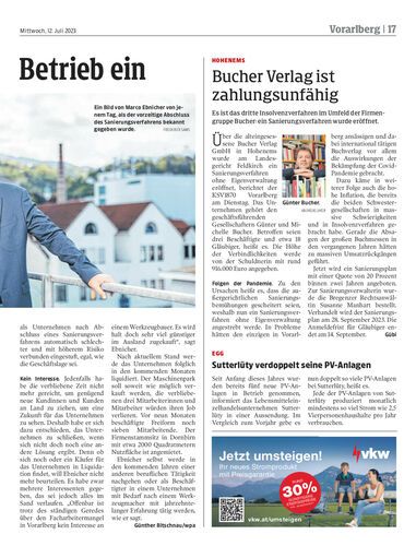 Es ist das dritte Insolvenzverfahren im Umfeld der Firmengruppe Bucher: ein Sanierungsverfahren wurde eröffnet.