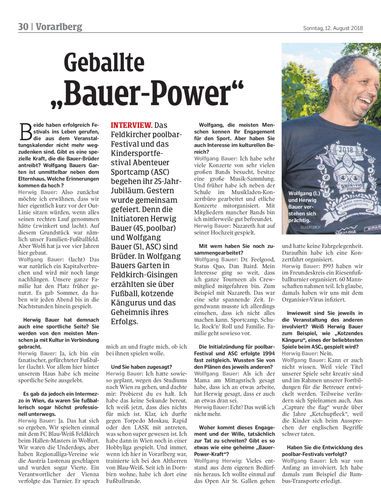 Interview. Das Feldkircher poolbar-Festival und das Kindersportfestival Abenteuer Sportcamp (ASC) begehen ihr 25-Jahr-Jubiläum. Gestern wurde gemeinsam gefeiert. Denn die Initiatoren Herwig Bauer (45, poolbar) und Wolfgang Bauer (51, ASC) sind Brüder. In Wolfgang Bauers Garten in Feldkirch-Gisingen erzählten sie über Fußball, kotzende Kängurus und das Geheimnis ihres Erfolgs.