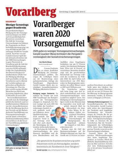 2020 gabe es weniger Vorsorgeuntersuchungen. Gerald Loacker (Neos) kritisiert die Perspektivenlosigkeit der Sozialversicherungsträger.