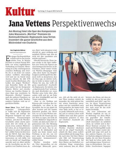 Am Montag feiert die Oper des Komponisten Jules Massenets „Werther“ Premiere im Kornmarkttheater. Regisseurin Jana Vetten inszeniert die ganze Geschichte aus dem Blickwinkel von Charlotte.
