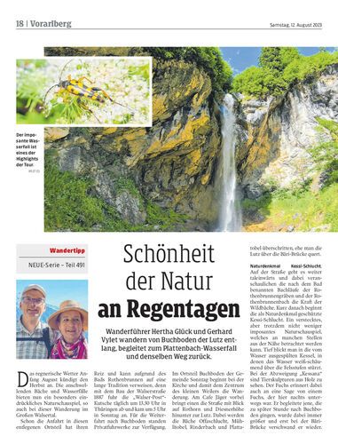 Wanderführer Hertha Glück und Gerhard Vylet wandern von Buchboden der Lutz entlang, begleitet zum Plattenbach-Wasserfall und denselben Weg zurück.