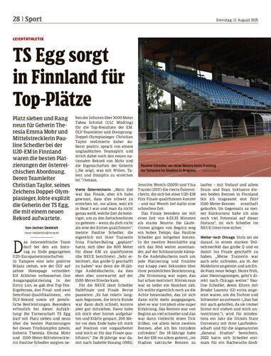 Platz sieben und Rang neun für Geherin Theresia Emma Mohr und Mittelstrecklerin Pauline Schedler bei der U20-EM in Finnland waren die besten Platzierungen der österreichischen Abordnung. Deren Teamleiter Christian Taylor, seines Zeichens Doppel-Olympiasieger, lobte explizit die Geherin der TS Egg, die mit einem neuen Rekord aufwartete.