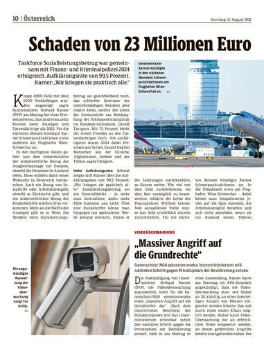 Taskforce Sozialleistungsbetrug war gemeinsam mit Finanz- und Kriminalpolizei 2024 erfolgreich. Aufklärungsrate von 99,5 Prozent. Karner: „Wir kriegen sie praktisch alle.“