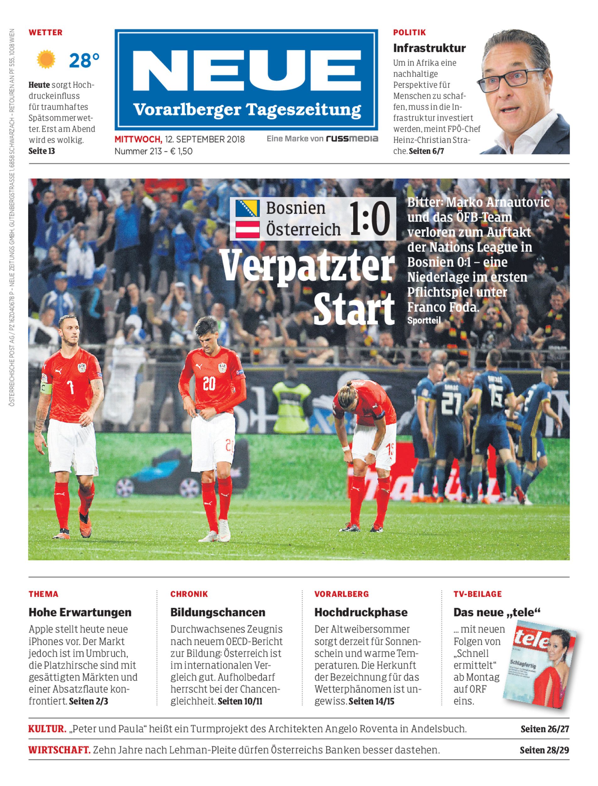 Bitter: Marko Arnautovic und das ÖFB-Team verloren zum Auftakt der Nations League in Bosnien 0:1 – eine Niederlage im ersten Pflichtspiel unter Franco Foda. Sport, Seite 56–59
