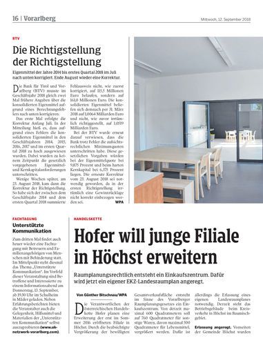 Eigenmittel der Jahre 2014 bis erstes Quartal 2018 im Juli nach unten korrigiert. Ende August wieder eine Korrektur.
