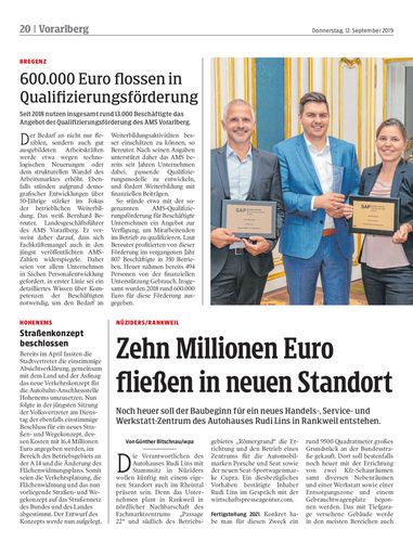 Noch heuer soll der Baubeginn für ein neues Handels-, Service- und Werkstatt-Zentrum des Autohauses Rudi Lins in Rankweil entstehen.
