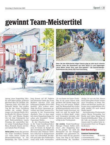 Das Team Vorarlberg sichert sich beim letzten Bundesliga-Rennen der Saison in Königswiesen den österreichischen Bundesliga-Meistertitel in Teamwertung.
