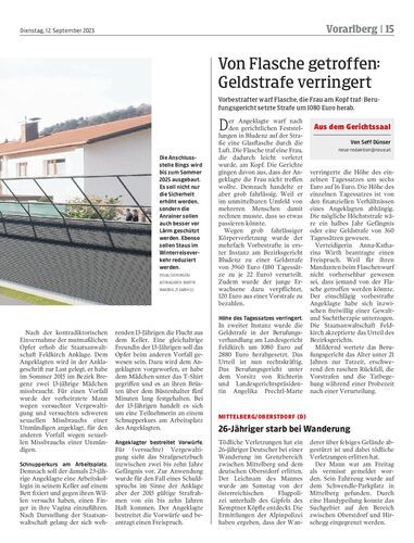 Vorbestrafter warf Flasche, die Frau am Kopf traf: Berufungsgericht setzte Strafe um 1080 Euro herab.