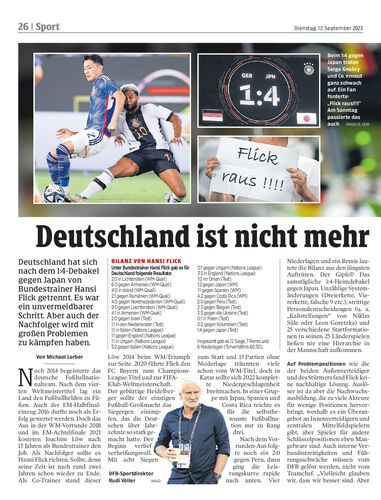Deutschland hat sich nach dem 1:4-Debakel gegen Japan von Bundestrainer Hansi Flick getrennt. Es war ein unvermeidbarer Schritt. Aber auch der Nachfolger wird mit großen Problemen zu kämpfen haben.