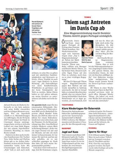 Eine Magenentzündung macht Dominic Thiems Antritt gegen Portugal unmöglich.