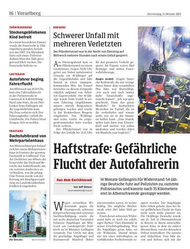 14 Monate Gefängnis für Widerstand: 54-jährige Deutsche fuhr auf Polizisten zu, rammte Polizeiautos und konnte nach 35 Kilometern erst in Alberschwende gestoppt werden.