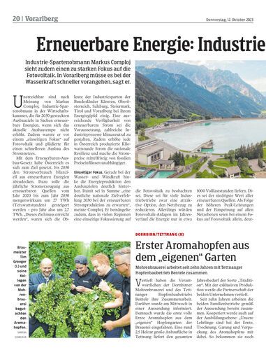 Industrie-Spartenobmann Markus Comploj sieht zudem einen zu starken Fokus auf die Fotovoltaik. In Vorarlberg müsse es bei der Wasserkraft schneller vorangehen, sagt er.