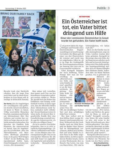 Einer der vermissten Österreicher in Israel wurde tot gefunden. Ein Vater hofft noch.