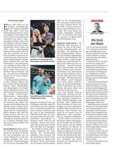 Bei der heutigen Sporthilfe-Gala in der Wiener Stadthalle (20.15 Uhr, ORF 1 live) werden Österreichs herausragendste Athleten des Jahres feierlich gekürt.