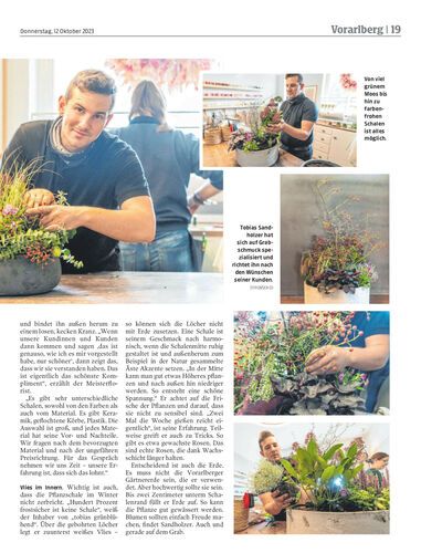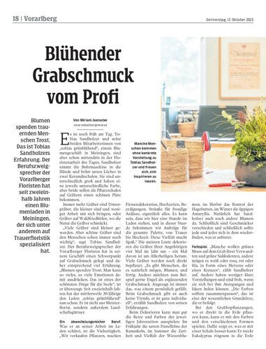 Blumen spenden trauernden Menschen Trost. Das ist Tobias Sandholzers Erfahrung. Der Berufszweigsprecher der Vorarlberger Floristen hat seit zweieinhalb Jahren einen Blumenladen in Meiningen, der sich unter anderem auf Trauerfloristik spezialisiert hat.