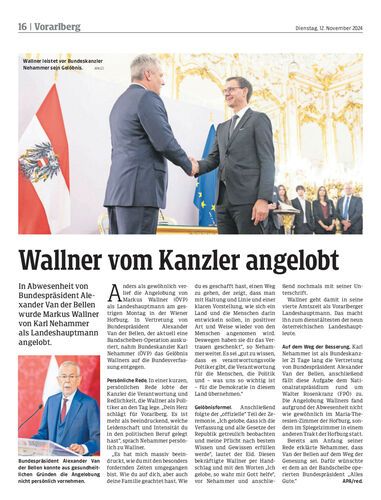 In Abwesenheit von Bundespräsident Alexander Van der Bellen wurde Markus Wallner von Karl Nehammer als Landeshauptmann angelobt.