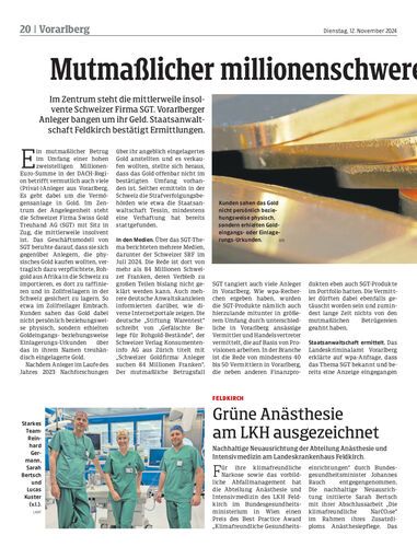 Im Zentrum steht die mittlerweile insolvente Schweizer Firma SGT. Vorarlberger Anleger bangen um ihr Geld. Staatsanwaltschaft Feldkirch bestätigt Ermittlungen.