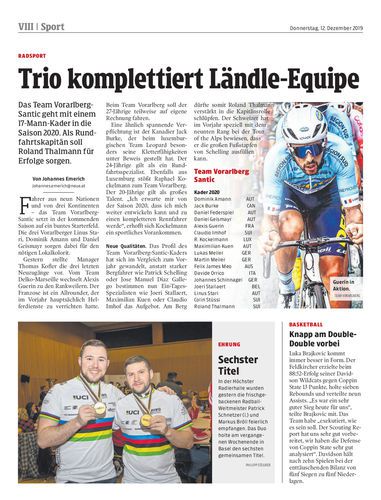 Das Team Vorarlberg-Santic geht mit einem 17-Mann-Kader in die Saison 2020. Als Rundfahrtskapitän soll Roland Thalmann für Erfolge sorgen.
