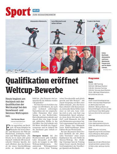 Heute beginnt am Hochjoch mit der Qualifikation der Wettkampf bei den Snowboard- und Skicross-Weltcuprennen.