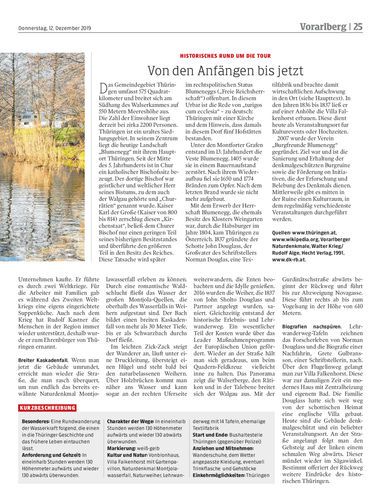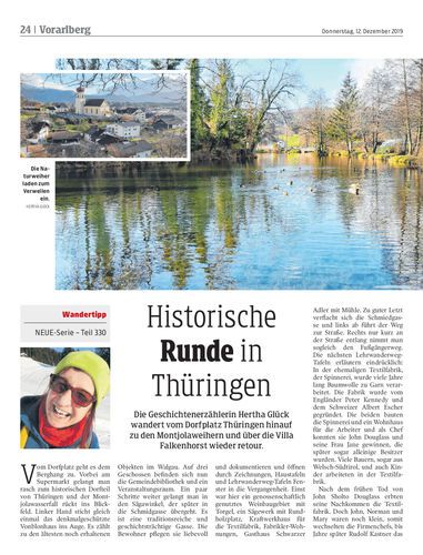 Die Geschichtenerzählerin Hertha Glück wandert vom Dorfplatz Thüringen hinauf zu den Montjolaweihern und über die Villa Falkenhorst wieder retour.