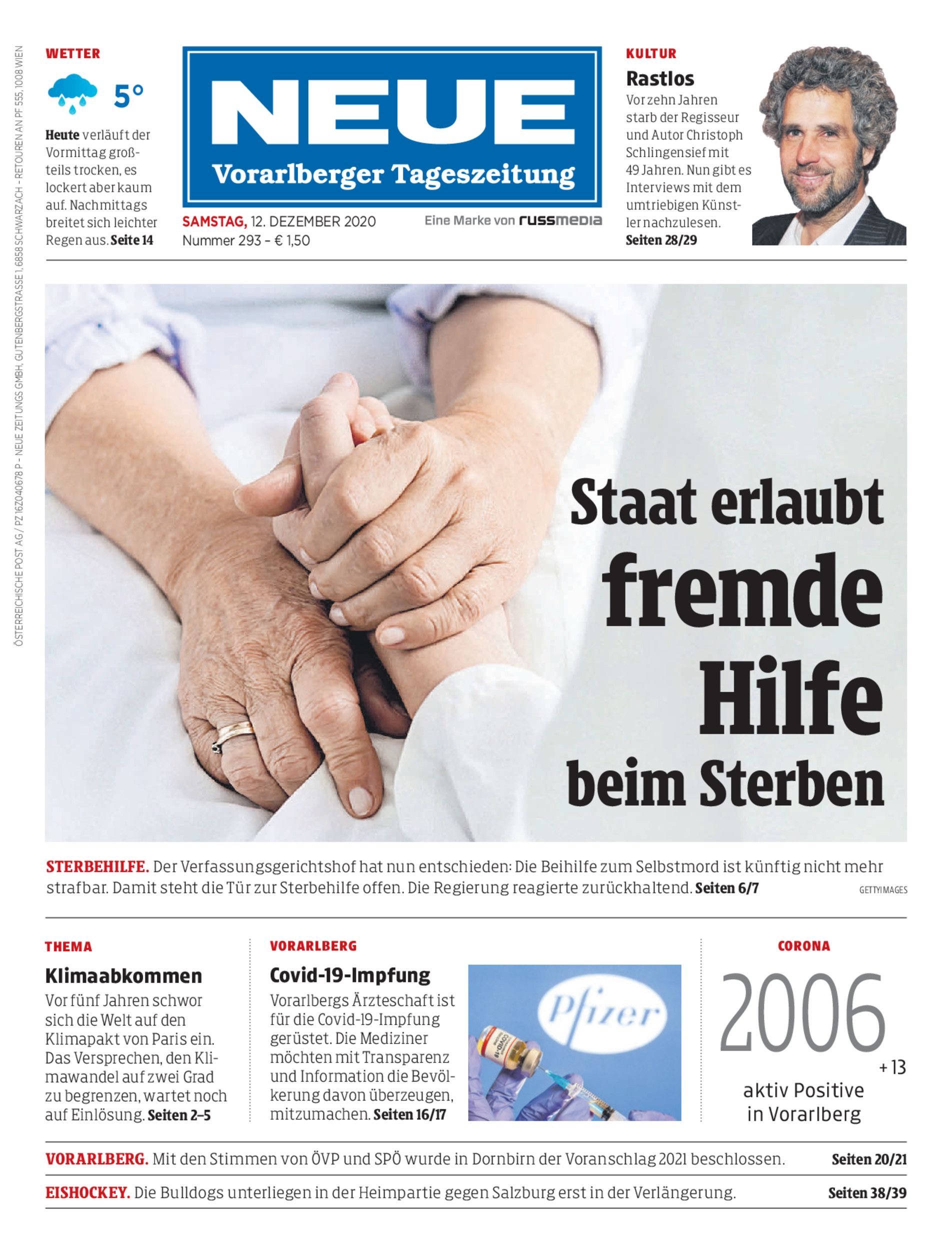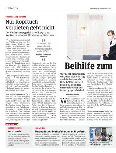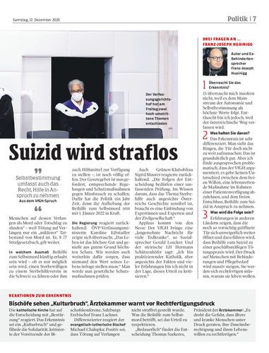 Sterbehilfe. Der Verfassungsgerichtshof hat nun entschieden: Die Beihilfe zum Selbstmord ist künftig nicht mehr strafbar. Damit steht die Tür zur Sterbehilfe offen. Die Regierung reagierte zurückhaltend. Seiten 6/7 Gettyimages