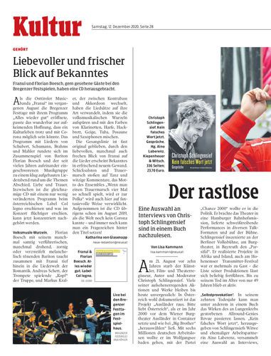 Franui und Florian Boesch, gern gesehene Gäste bei den Bregenzer Festspielen, haben eine CD herausgebracht.