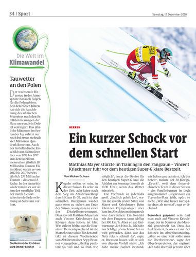 Matthias Mayer stürzte im Training in den Fangzaun – Vincent Kriechmayr fuhr vor dem heutigen Super-G klare Bestzeit.