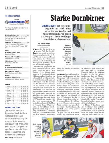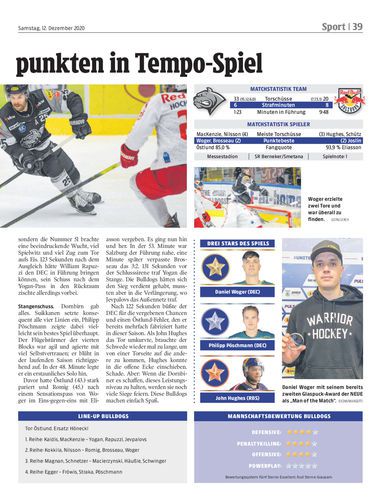 Spielbericht. Beherzte Bulldogs müssen sich in einer rasanten, packenden und hochklassigen Partie gegen Salzburg erst in der Verlängerung 2:3 geschlagen geben.