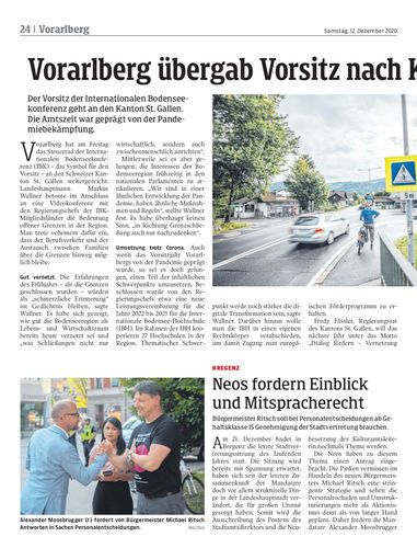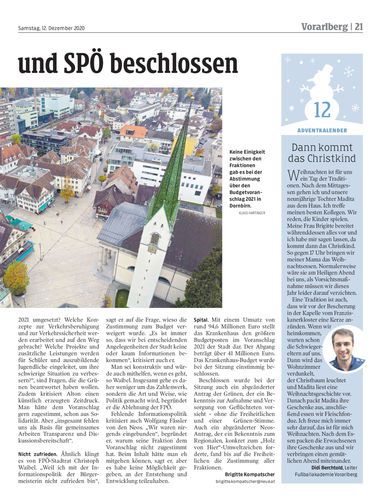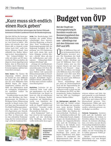 Bei der Stadtvertretungssitzung in Dornbirn wurde am Donnerstagabend das Budget 2021 beschlossen – allerdings nur mit den Stimmen von ÖVP und SPÖ.