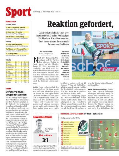 Das Schlusslicht Altach tritt heute (17 Uhr) beim Aufsteiger SV Ried an. Alex Pastoor fordert von seinem Team mehr Zusammenhalt ein.