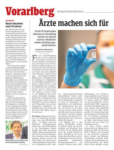 Covid-19-Impfungen könnten in Vorarlberg bereits im Jänner starten. Mediziner wollen Aufklärungsarbeit leisten.