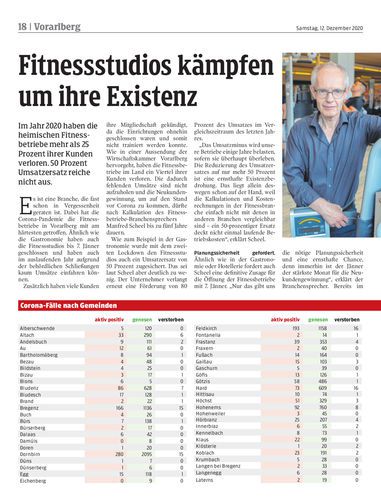 Im Jahr 2020 haben die heimischen Fitnessbetriebe mehr als 25 Prozent ihrer Kunden verloren. 50 Prozent Umsatzersatz reiche nicht aus.
