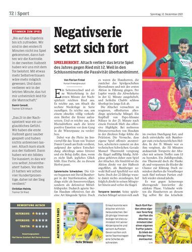 Spielbericht. Altach verliert das letzte Spiel des Jahres gegen Ried mit 1:2. Weil in den Schlussminuten die Passivität überhandnimmt.
