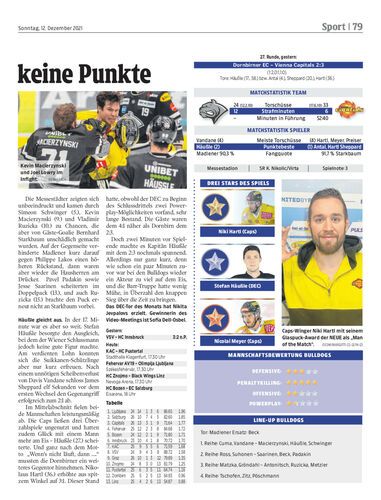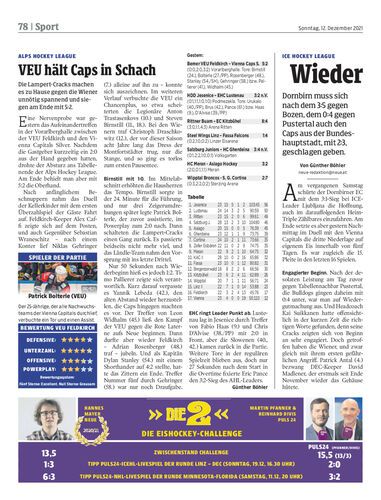 Dornbirn muss sich nach dem 3:5 gegen Bozen, dem 0:4 gegen Pustertal auch den Caps aus der Bundeshauptstadt, mit 2:3, geschlagen geben.