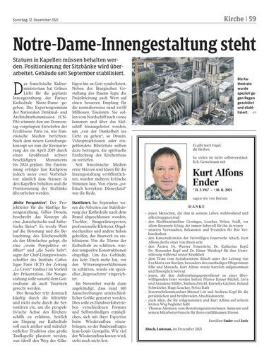Statuen in Kapellen müssen behalten werden. Positionierung der Sitzbänke wird überarbeitet. Gebäude seit September stabilisiert.