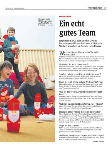Raphael Fink (7), Elena Bickel (7) und Lotte Staples (8) aus der 2a der VS Bütze in Wolfurt sprechen im Namen ihrer Klasse.