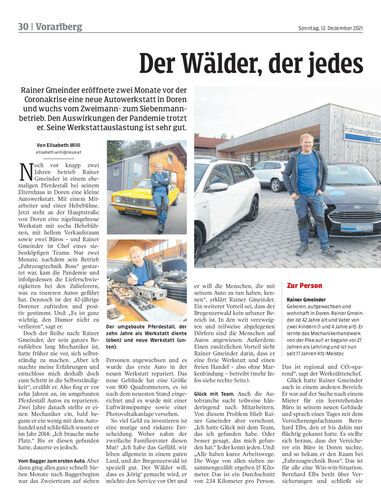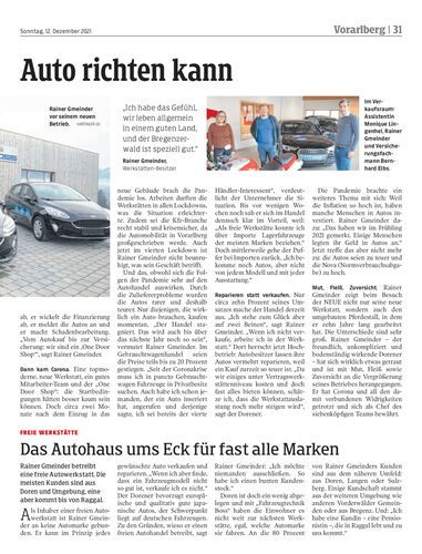 Rainer Gmeinder betreibt eine freie Autowerkstatt. Die meisten Kunden sind aus Doren und Umgebung, eine aber kommt bis von Raggal.