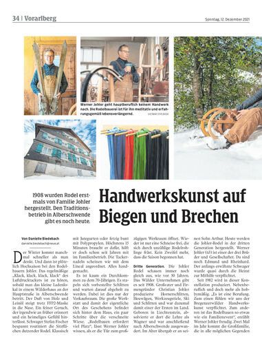 1908 wurden Rodel erstmals von Familie Johler hergestellt. Den Traditionsbetrieb in Alberschwende gibt es noch heute.