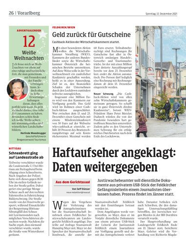 Justizwachebeamter soll dienstliche Dokumente aus privatem USB-Stick der Feldkircher Gefängnisleiterin einem Journalisten überlassen haben. Prozess findet im Jänner statt.