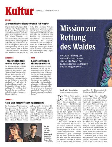 Die Uraufführung des neuen Klassenzimmerstücks „Die Wald“ des Landestheaters ist morgen Nachmittag zu sehen.