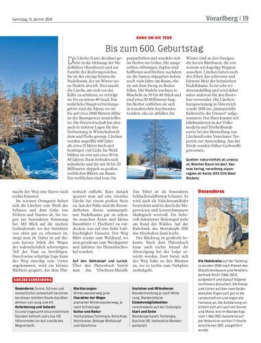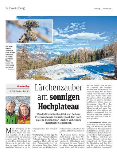 Wanderführer Hertha Glück und Gerhard Vylet wandern in Bürserberg auf dem Hochplateau Tschengla an Lerchen vorbei zum malerischen Mottakopf.