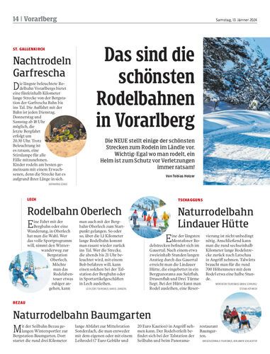 Die NEUE stellt einige der schönsten Strecken zum Rodeln im Ländle vor. Wichtig: Egal wo man rodelt, ein Helm ist zum Schutz vor Verletzungen immer ratsam!