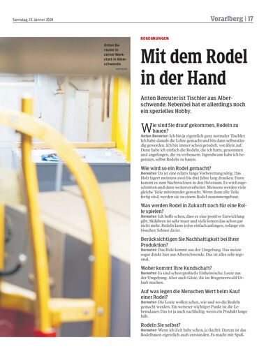Anton Bereuter ist Tischler aus Alberschwende. Nebenbei hat er allerdings noch ein spezielles Hobby.
