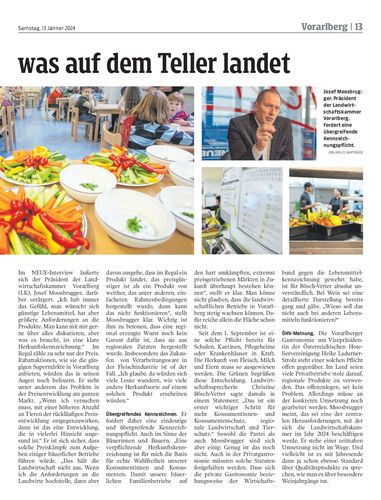 Seit 1. September 2023 gibt es eine Kennzeichnungspflicht von Produkten in öffentlichen Großküchen. LK-Präsident Moosbrugger fordert eine Ausweitung auf die private Gastronomie.