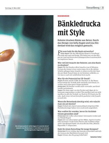 Roboter drucken Bänke aus Beton. Durch das Design von Sofia Hagen und Lisa Hinderdael wird das möglich gemacht.